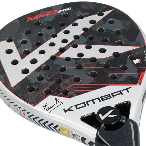 La Kombat MM3 Pro de Manu Martín es una pala con forma de lágrima y balance medio diseñada para ofrecer versatilidad a los jugadores de pádel profesionales.